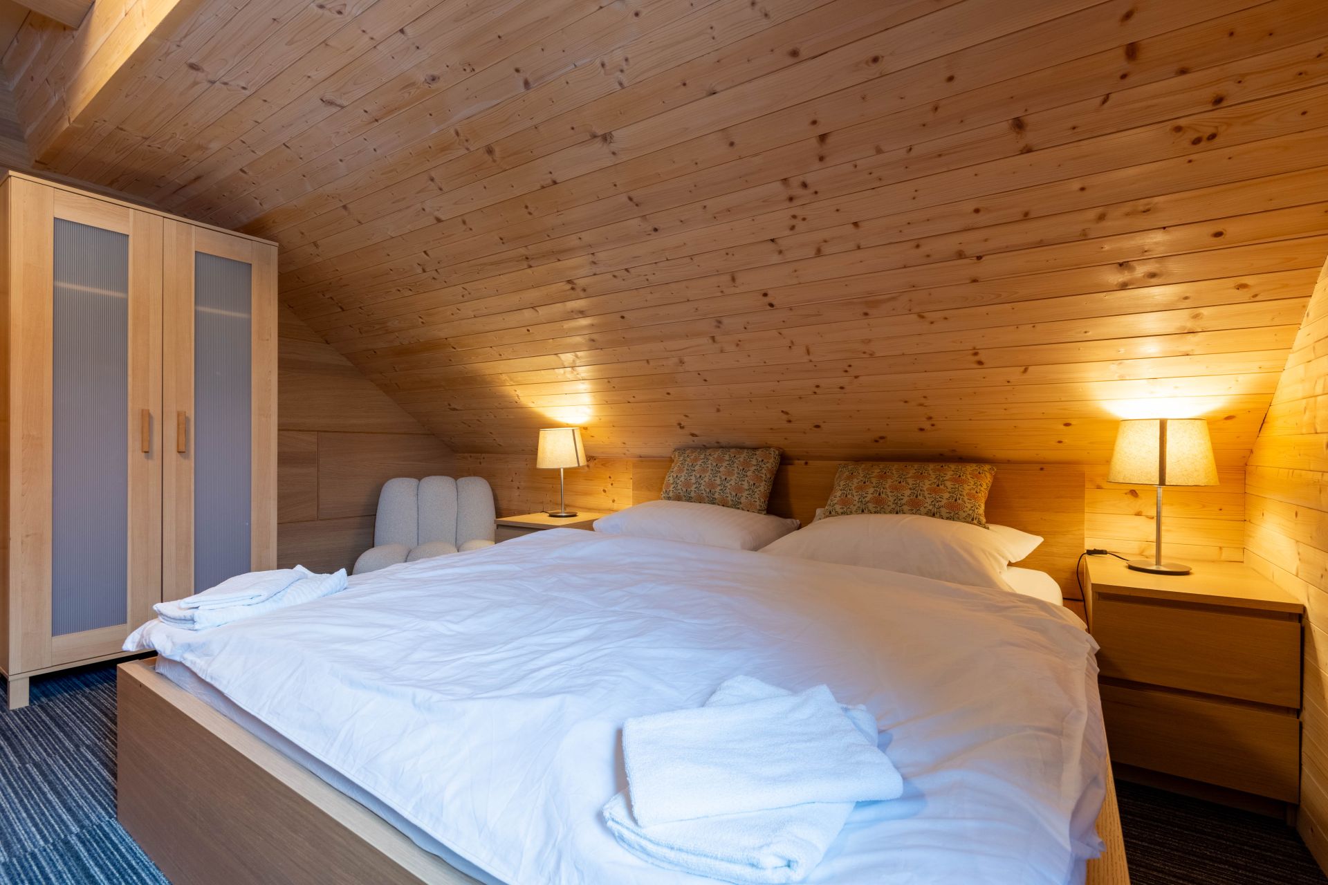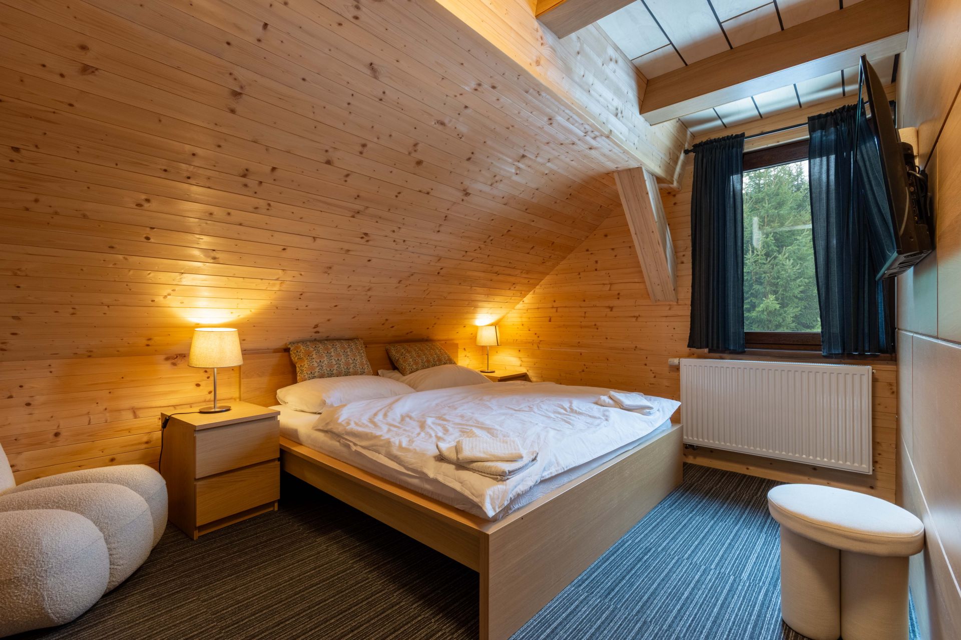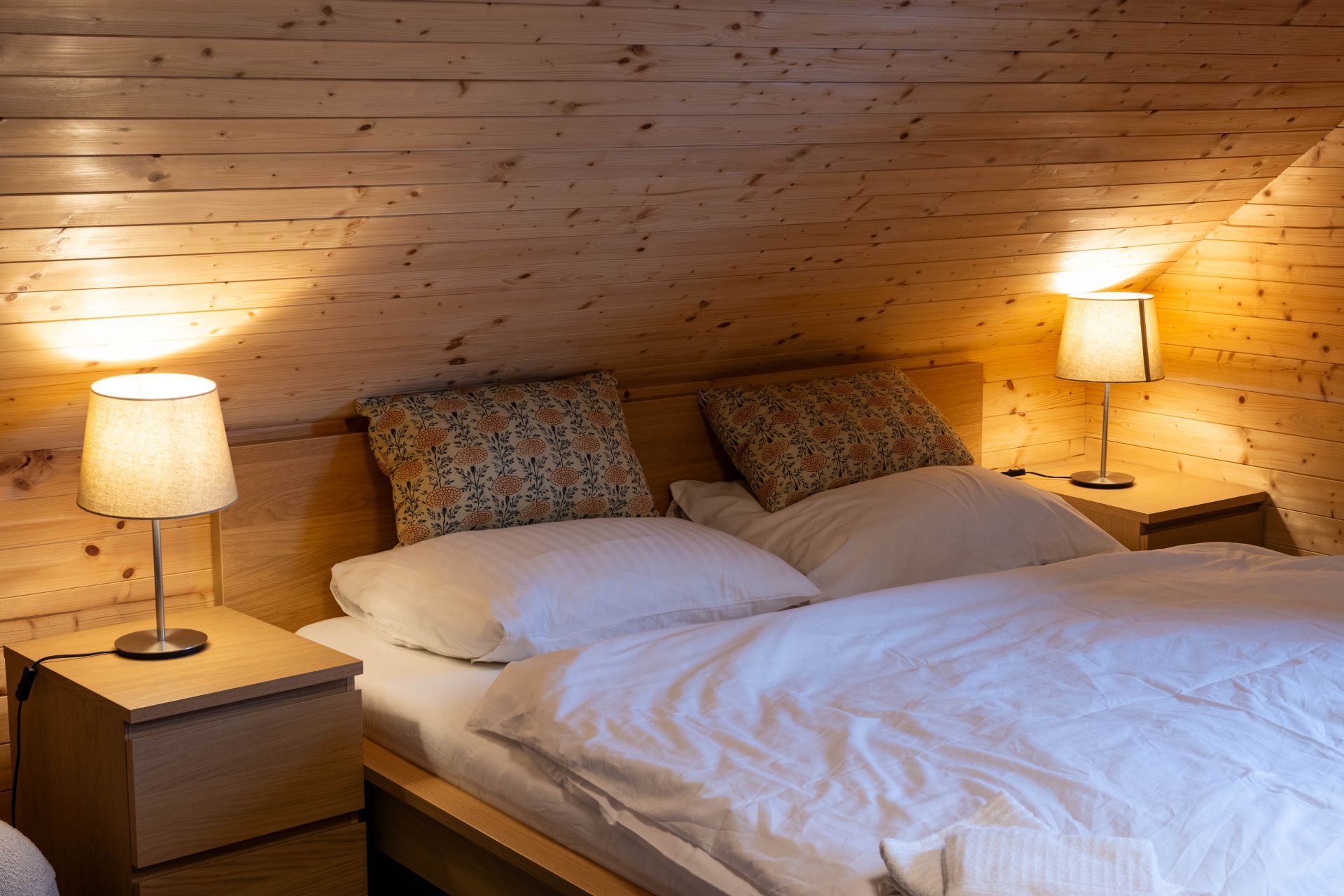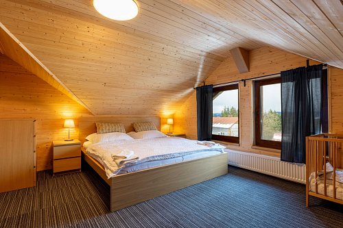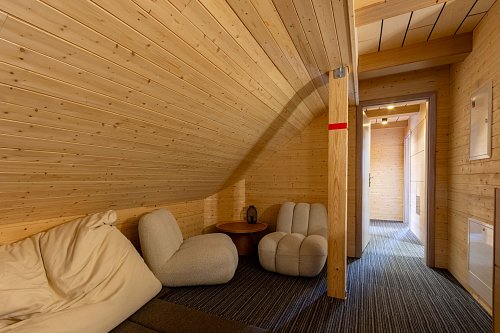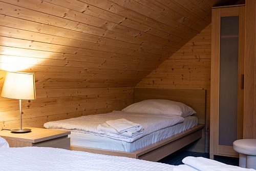 Aktuálně je k dispozici 11 lůžek, které jsou rozděleny do 4 ložnic. Dále jsou zde 2 koupelny, jedna s vanou a druhá se sprchovacím koutem.