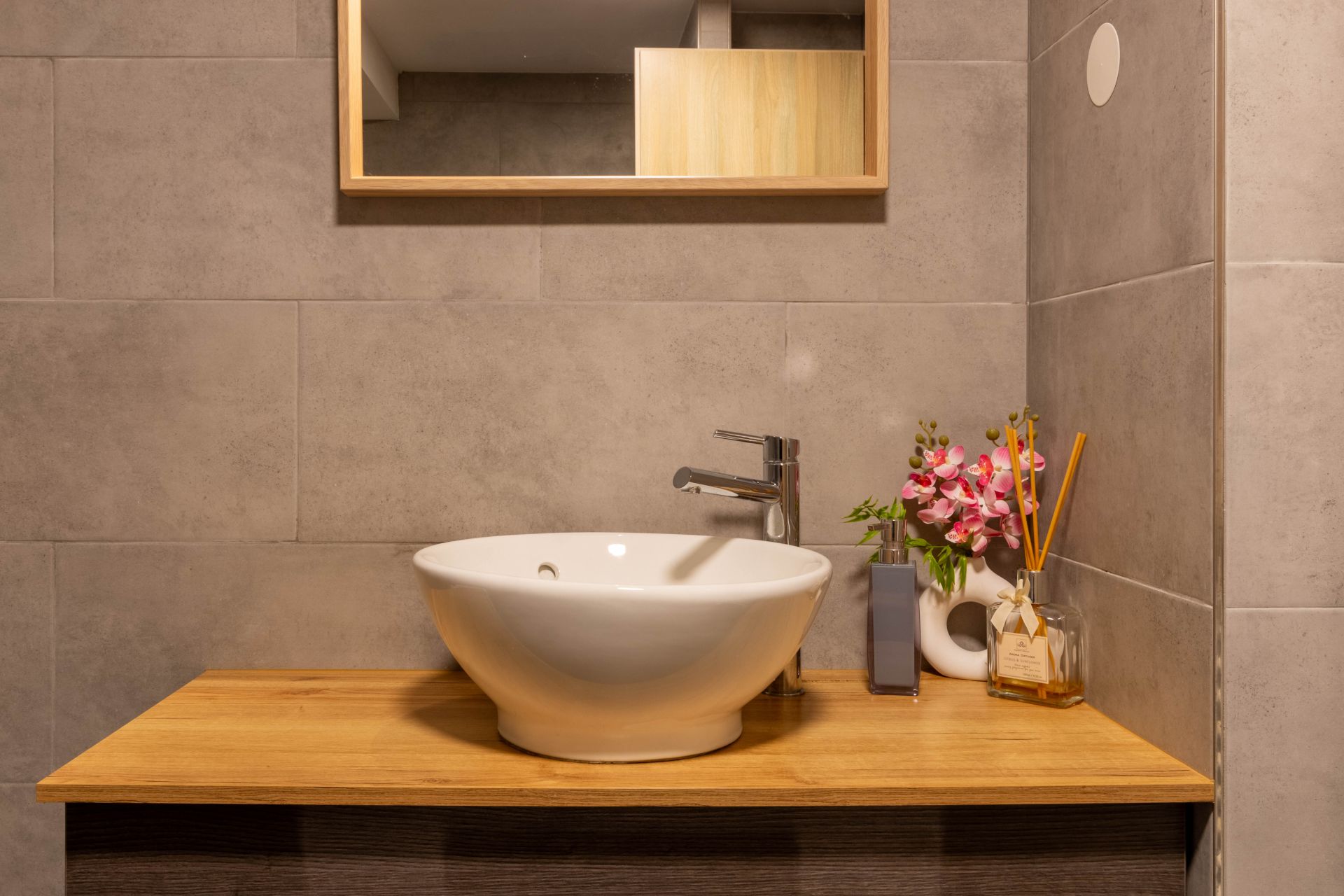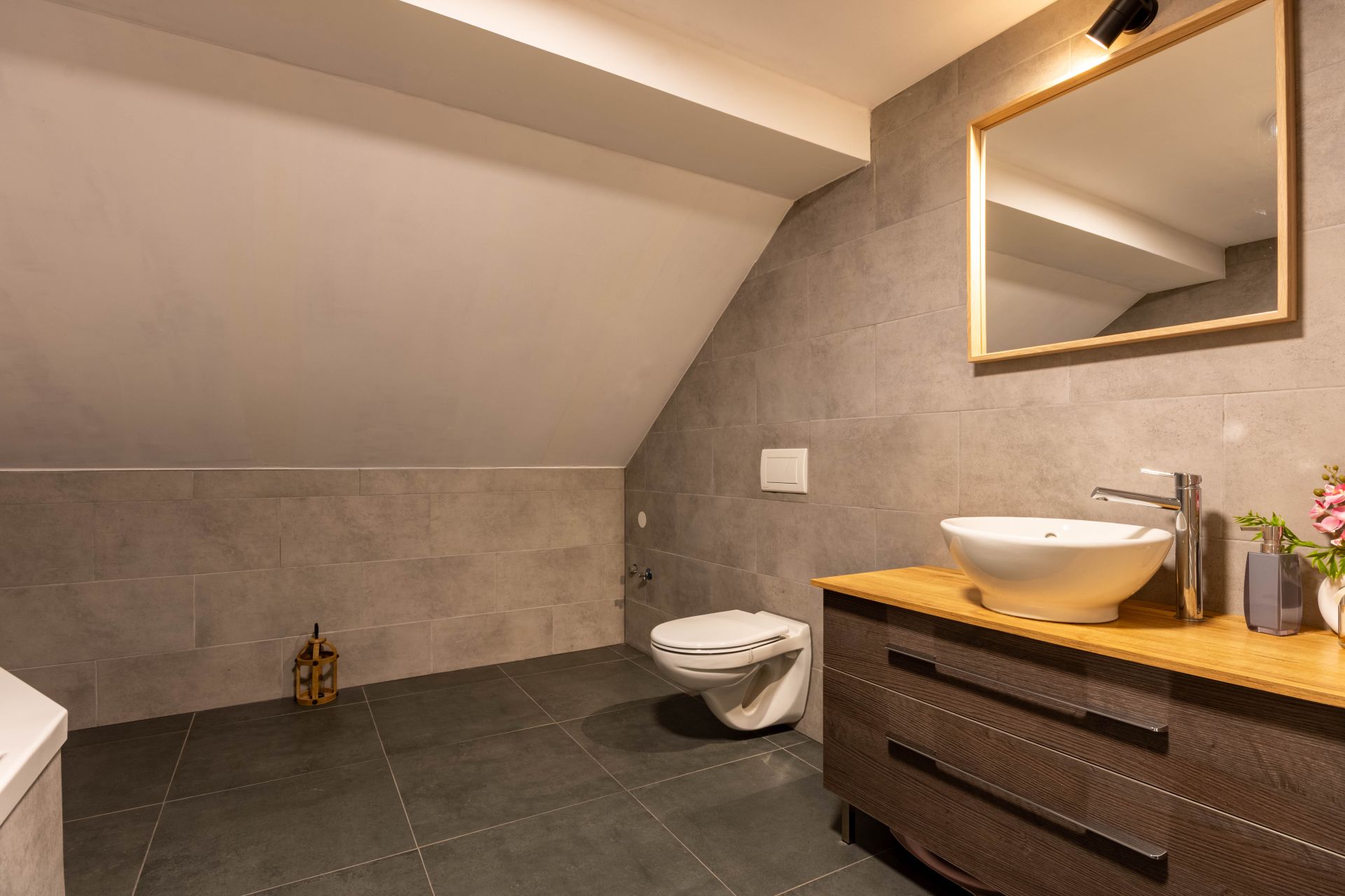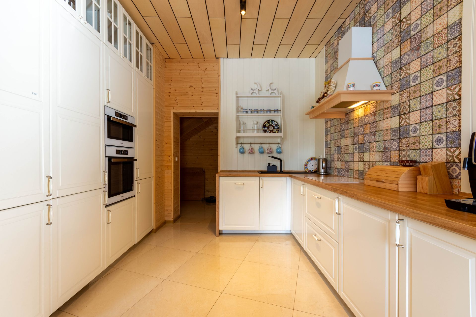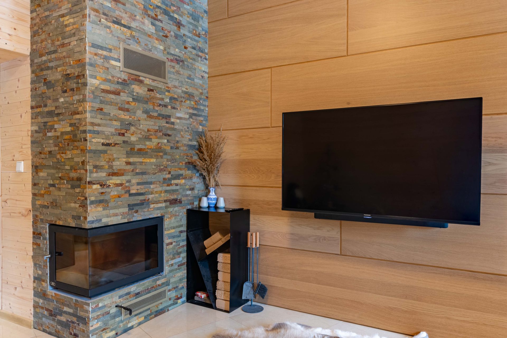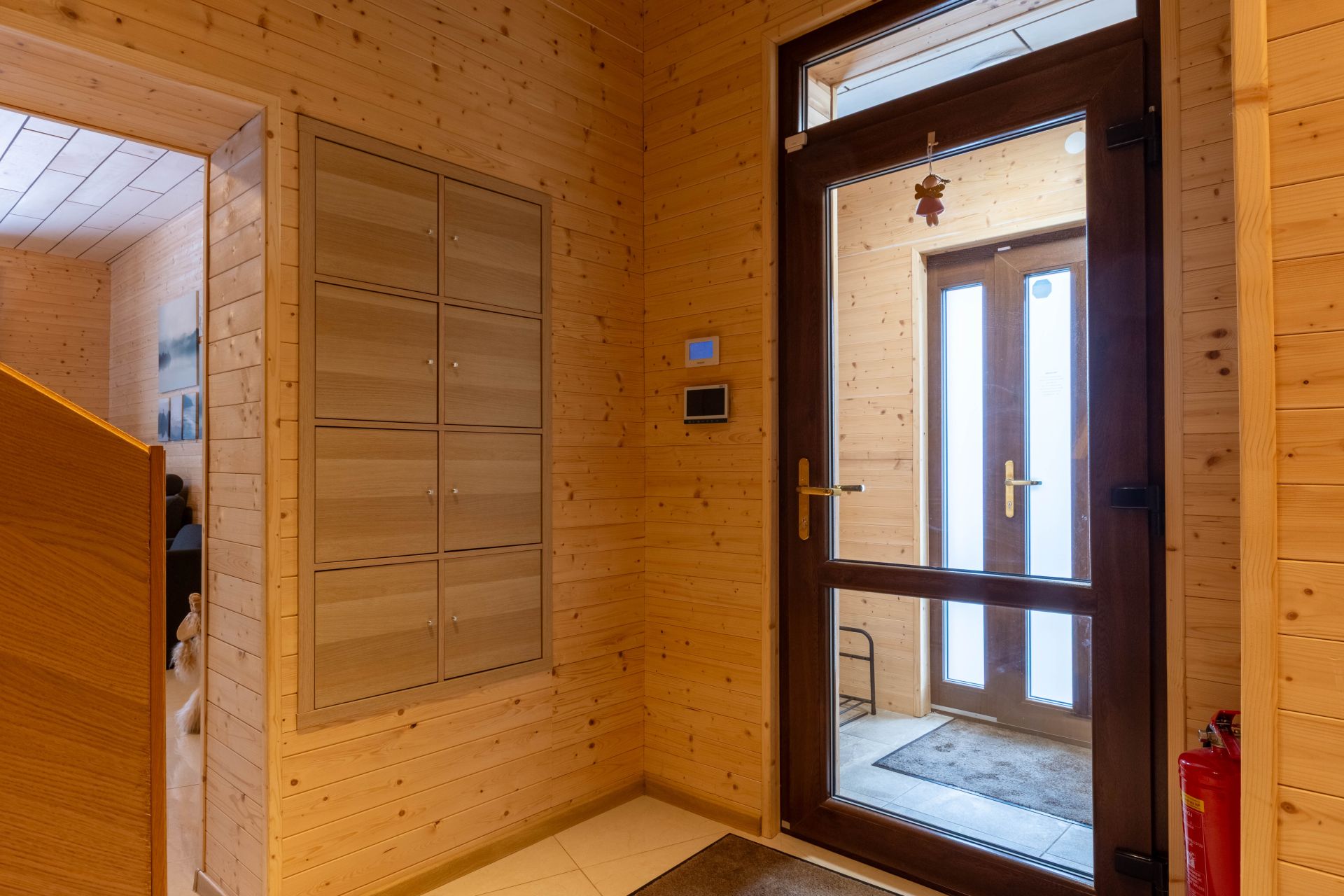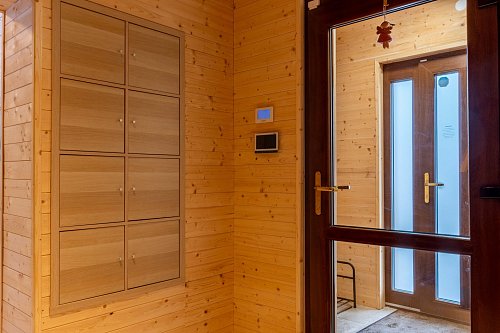 - Vytápění = elektrokotel s rozvody do radiátorů + je provedena příprava na peletkový kotel + je možné vytápět krbem v obývacím pokoji