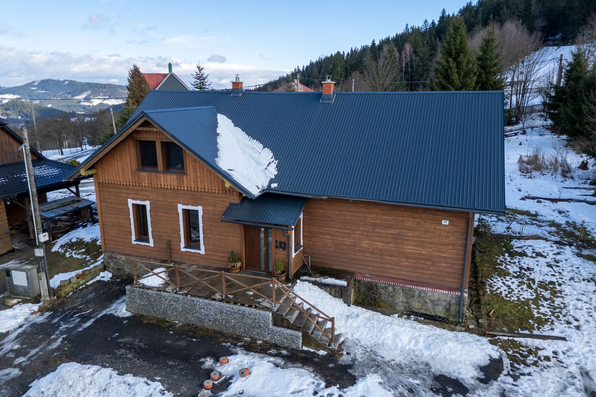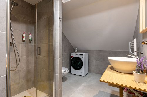 Mám pro Vás ke koupi plně vybavenou nemovitost moderního směru v přírodě, vhodná jak k vlastnímu využití nebo pro krátkodobé pronájmy, u které proběhla rozsáhlá rekonstrukce, jedná se o dřevostavbu s užitnou plochou 230 m2, na pozemku o výměře 343 m2 se zastavěnou plochou 177 m2. Jsou zde celkem 2. nadzemní podlaží.