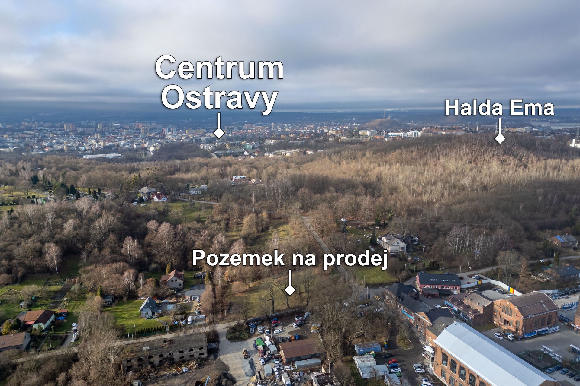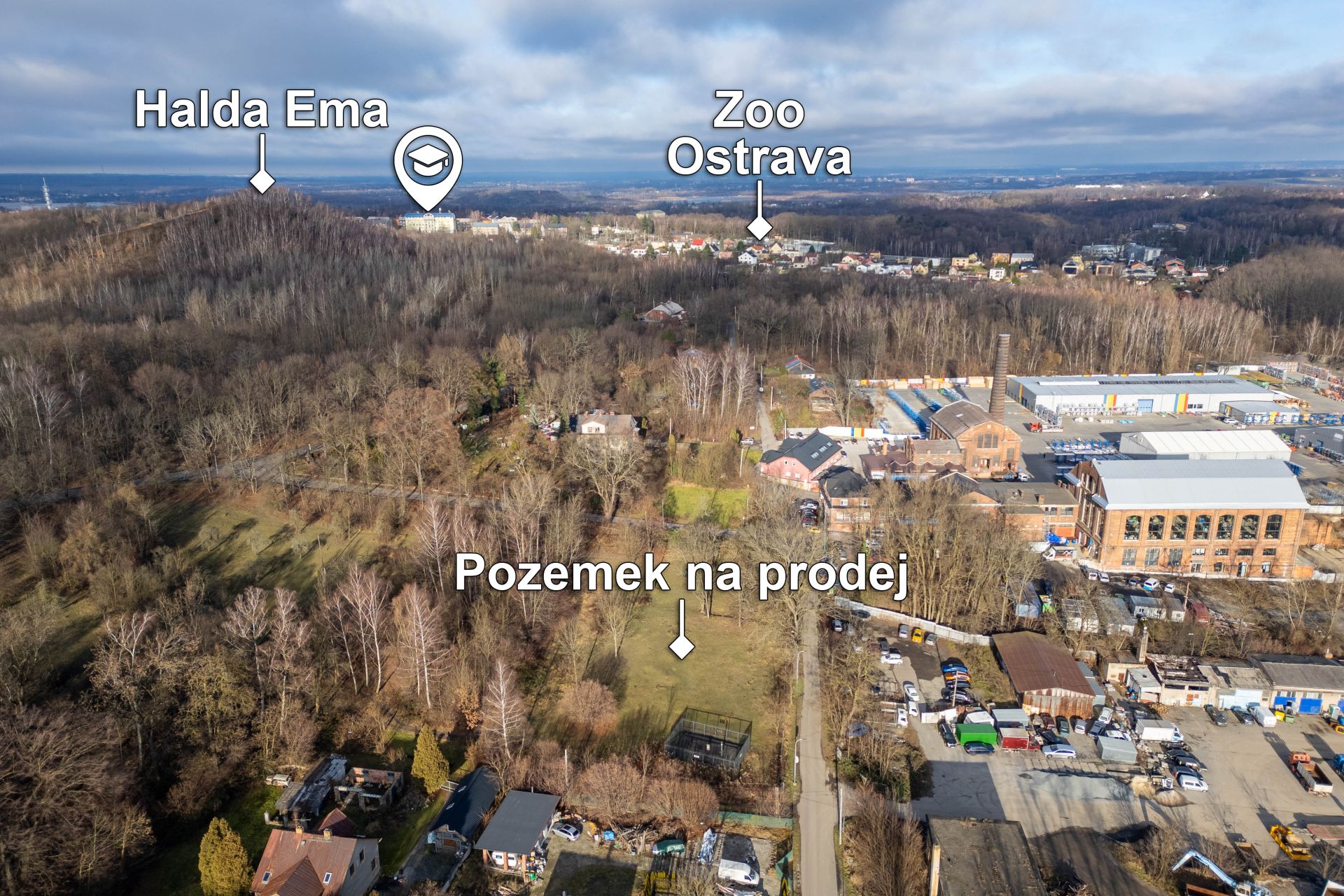 Ve vzdálenosti 11 km (20 minut autem) od pozemku je nájezd na dálnici D56 ve směru na Frýdek-Místek, do kterého to máte 15 km (zhruba 20 minut autem). Na opačnou stranu je 8,5 km nedaleko (15 minut autem) nájezd na dálnici D1. Na významnou trať Ostravy, kterou je ulice Rudná, díky které se můžete snadno dopravit napříč Ostravou nebo na Havířov je cesta od pozemku 4 km (5 minut autem).